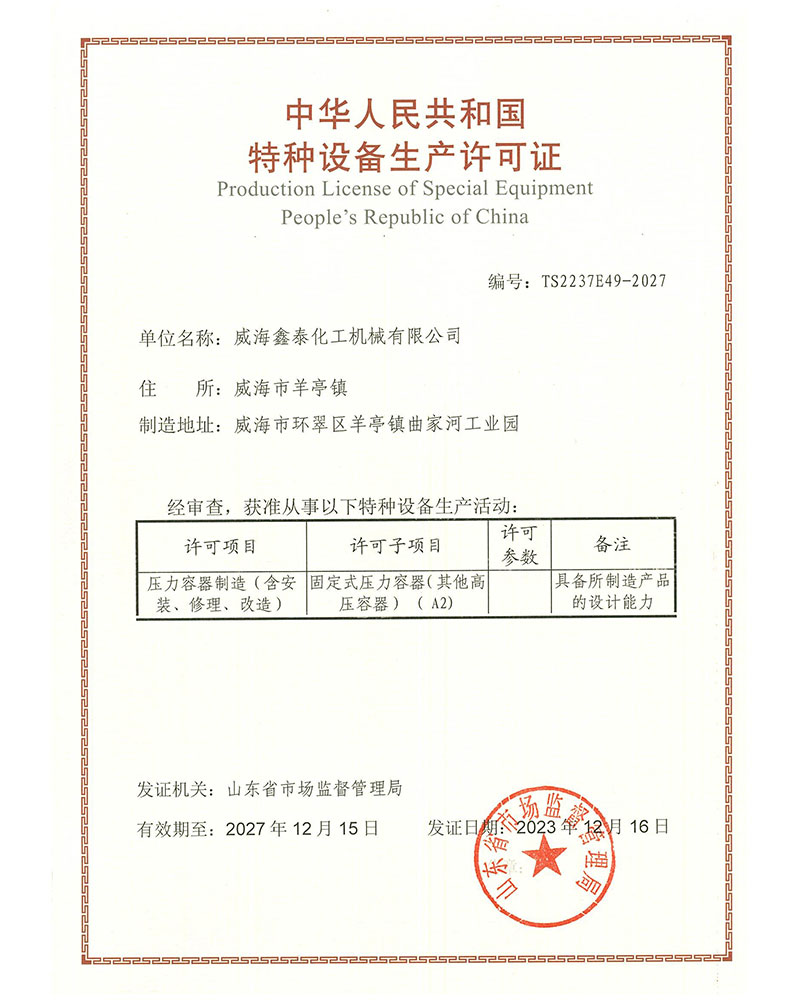 特種設備制造許可證